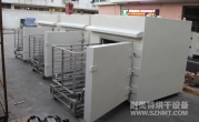 (1)烘干工作時(shí)間12小時(shí),烘干溫度120℃可調(diào)。預(yù)計(jì)產(chǎn)能為600Kg/車(chē)。產(chǎn)品采用托盤(pán)平鋪方式放置。