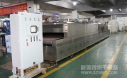 2、外形尺寸(約):長(zhǎng)13000mm*高1800mm*寬2400mm,地面到網(wǎng)帶的高度為1000mm;進(jìn)料區(qū)1000mm,升溫區(qū)長(zhǎng)500mm,恒溫區(qū)長(zhǎng)10000mm(分5段均可獨(dú)立控制),出料區(qū)1500mm;