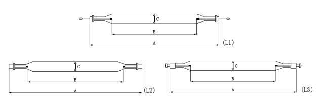 | 序號 | 圖號 | 功率 | 工件電壓(V) | 工作電流(A) | 全長A | 極距B | 管徑C | 功率密度(W/mm) | 備注 |